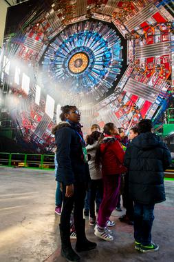 Estudiantes de secundaria visitan las instalaciones del experimento CMS del Gran Colisionador de Hadrones (LHC). Foto: CERN